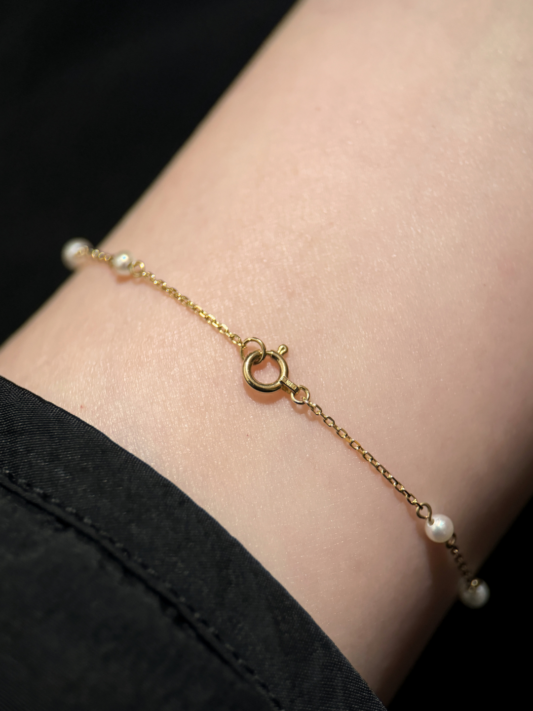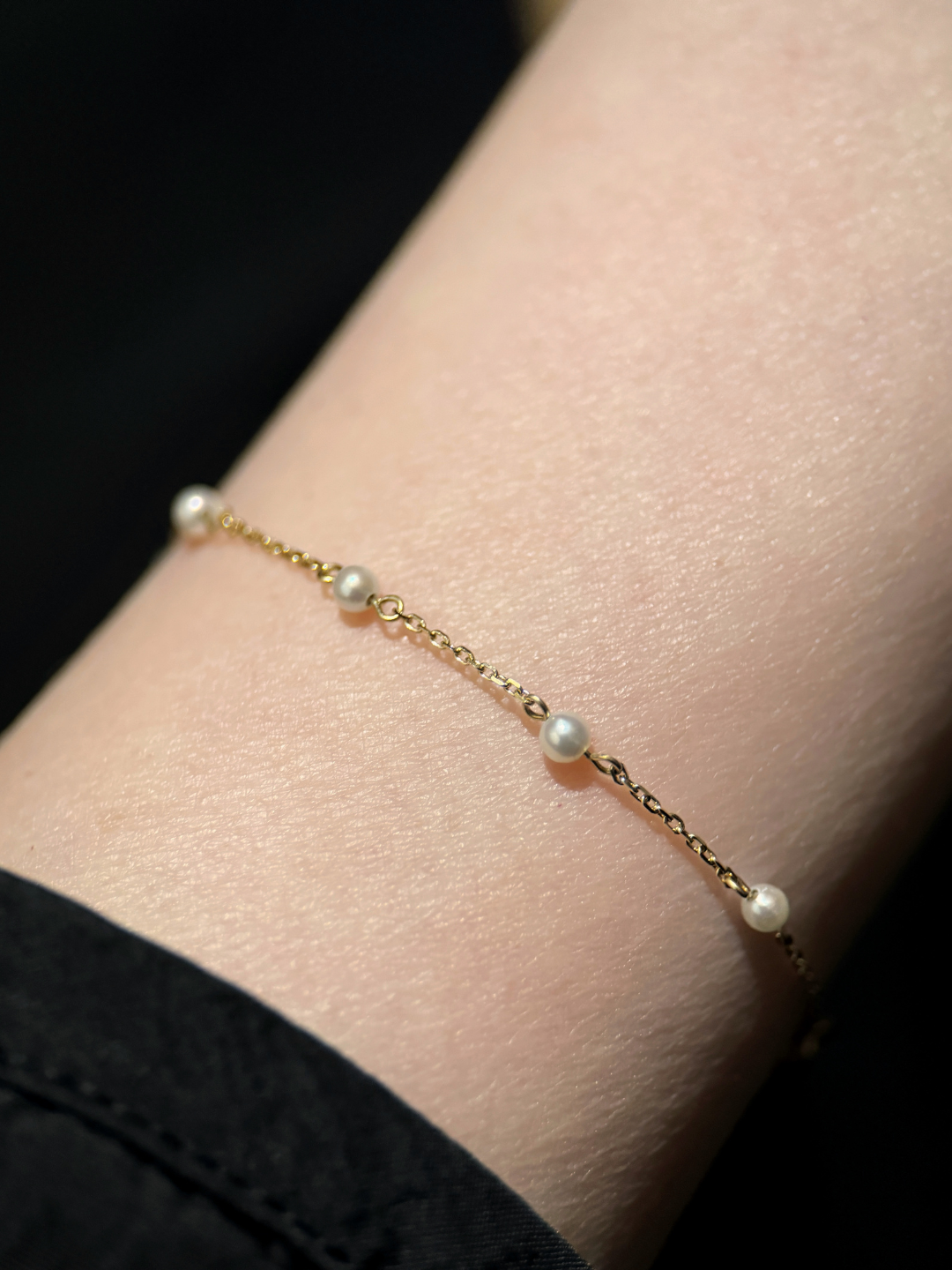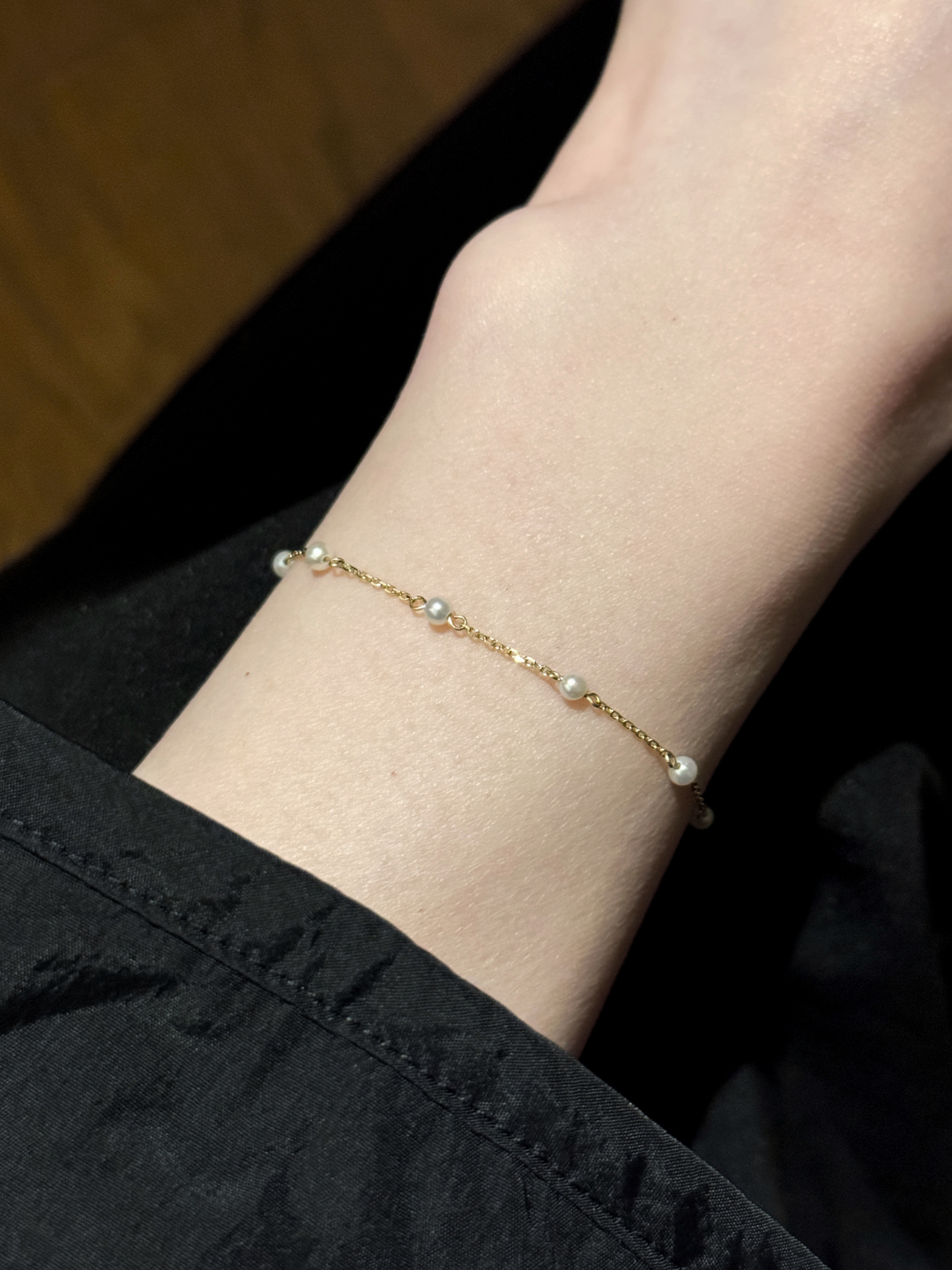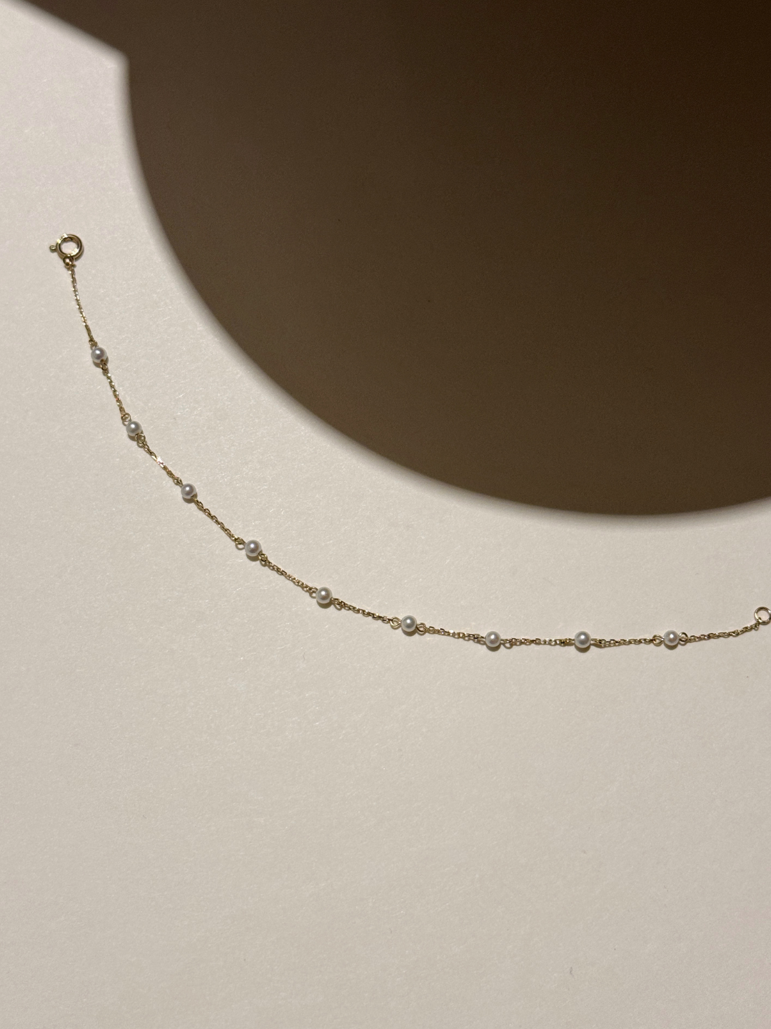 這條全珍珠手鍊不帶任何色彩,只保留了最原始的規律。