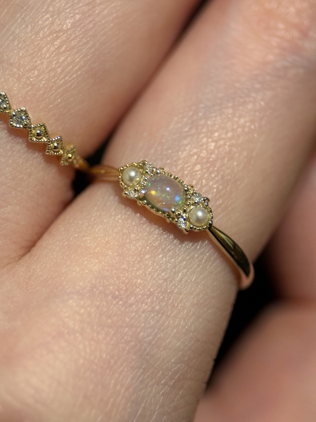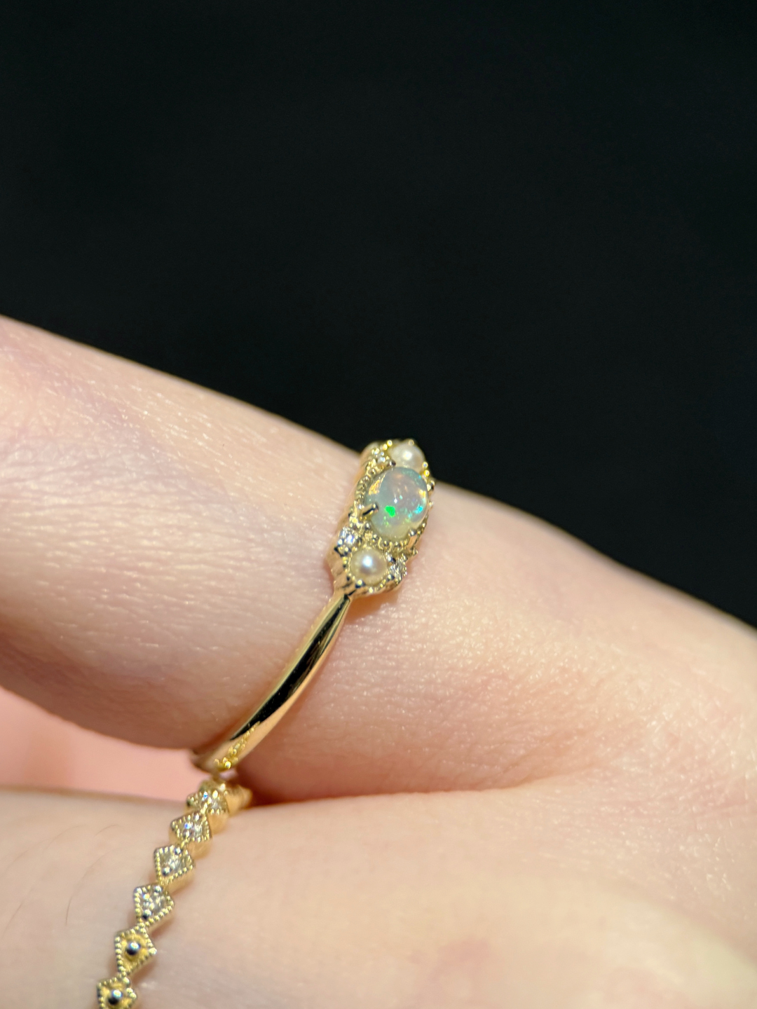 珍珠、歐泊蛋白石為有機寶石請於洗澡、睡前取下